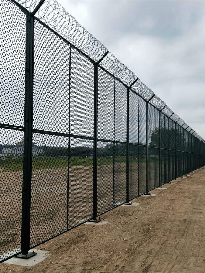 飛機場護欄網是飛機場的基礎設施。我國正在加強對機場的小型機場的建設,我們的出行更加便利了。而且對物流行業的繁榮發展更是強大的助力!飛機場護欄網頂部加裝刀片刺絲、